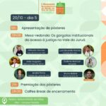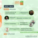 A programação incluirá: palestras, mesas redondas, rodas de conversas, oficinas práticas na área jurídica e submissão de trabalhos acadêmicos, de forma que os três primeiros trabalhos mais bem avaliados receberão uma premiação em dinheiro. Além disso, ao final de cada dia, o evento contará com sorteios de prêmios e coffee break.