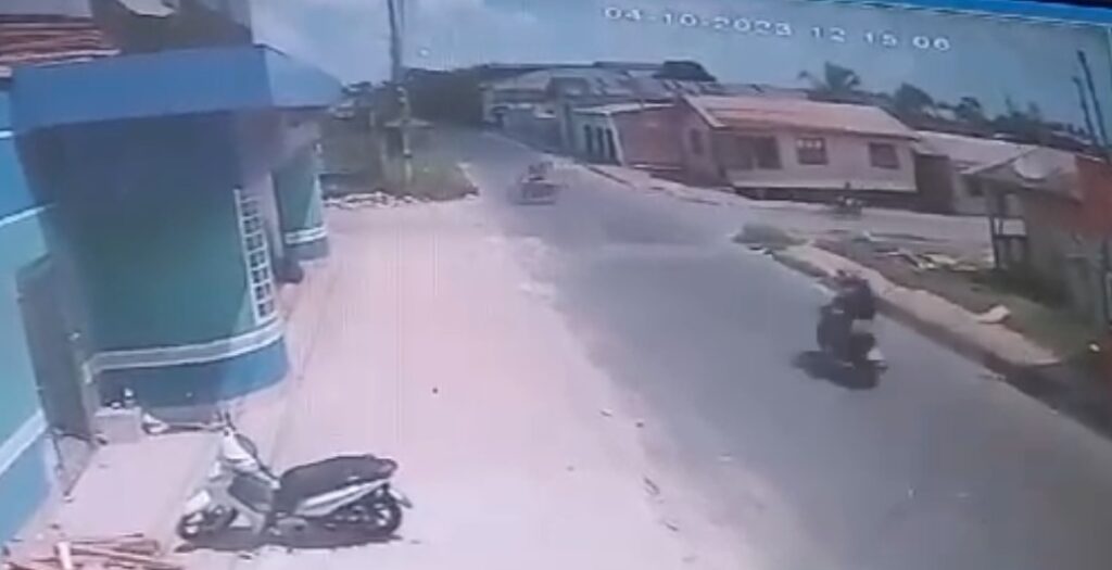 Por meio das imagens de câmeras de segurança, é possível observar o condutor que trafegava na principal em alta velocidade no momento em que colidiu com o motociclista que atravessava a via.
