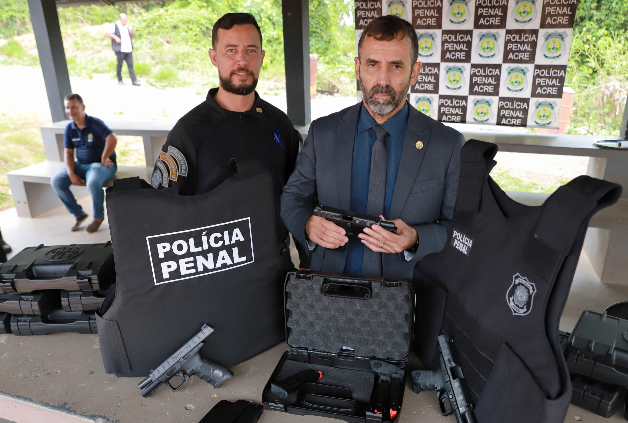Foram entregues 1.200 Pistolas semiautomáticas Beretta APX Full Size calibre .40S&W, com acessórios, peças de reposição e 570 Coletes balísticos nível 3A. Com as novas aquisições, a Polícia Penal trabalhará mais qualificada e apropriada para os profissionais da segurança pública.