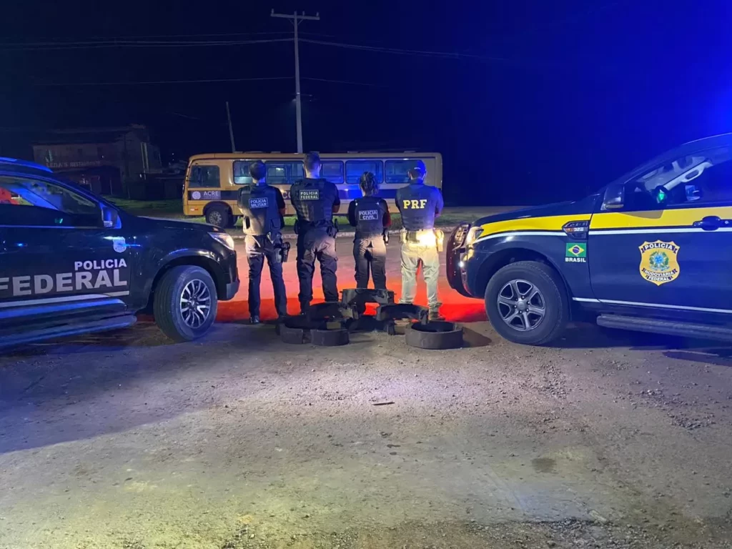 A Força Integrada de Combate ao Crime Organizado (FICCO/AC), composta por policiais federais, rodoviários federais, civis, militares e penais, prendeu um homem, de 25 anos, transportando drogas em compartimento oculto dos pneus de uma caminhonete. O fato aconteceu na BR-364, na cidade de Bujari, em fiscalização conjunta, na noite desta terça-feira, 31.