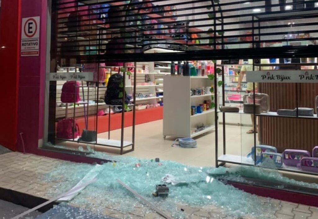 Por meio das imagens, pode-se observar que os criminosos quebraram o vidro da loja e invadiram o estabelecimento comercial, furtando vários produtos.