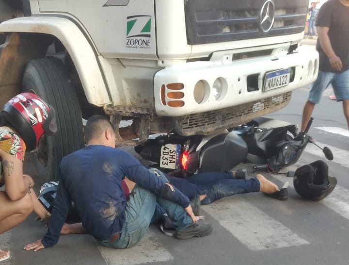 No momento da colisão, a motocicleta era ocupada por um casal. De acordo com informações colhidas no local, a mulher que vinha na garupa da moto, chegou a ficar embaixo do caminhão, e foi socorrida por uma equipe do Serviço de Atendimento Móvel de Urgência (Samu).