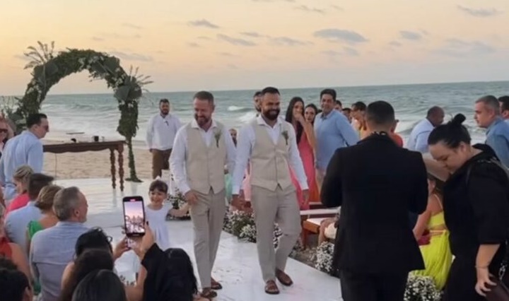 O secretário de Estado de Turismo e Empreendedorismo, Marcelo Messias, oficializou sua união com o arquiteto acreano Leandro Rocha em uma festa luxuosa na praia de Presídio, em Aquiraz, Ceará. A cerimônia contou com a presença de diversas personalidades acreanas, incluindo o governador Gladson Cameli e sua namorada Hanna Salim.