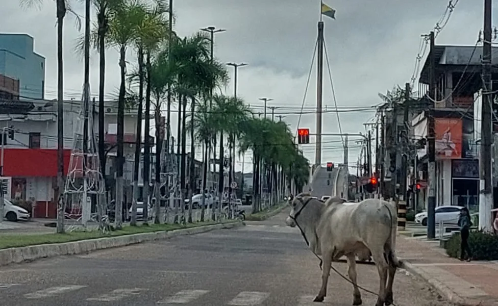 Em Cruzeiro do Sul, nas primeiras horas deste domingo, 31, último dia de 2023, um boi andava livremente pela região central da cidade. Com uma corda no pescoço, o animal, que parece ser um nelore, caminhava pela Avenida Mâncio Lima. Ninguém apareceu para pegar o boi que seguia rumo à Ponte da União.
