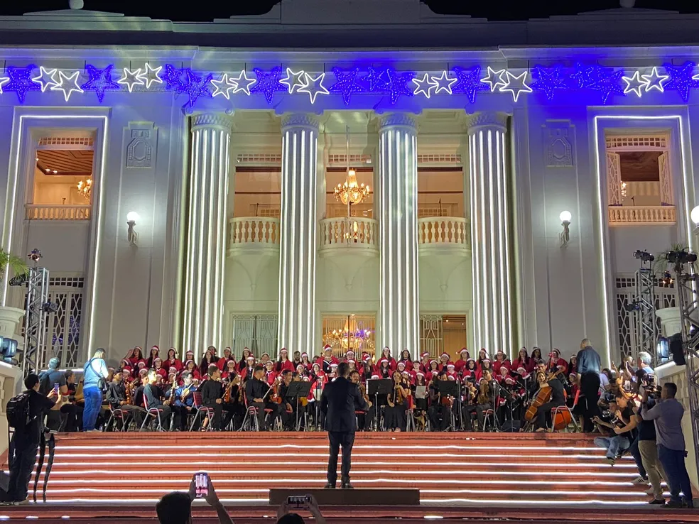 Seja ao som da clássica “Então É Natal”, da cantora Simone, seja ao som da descolada “Dance Monkey”, de Tones and I, os alunos da Escola de Música do Acre (Emac) apresentam, na noite desta sexta-feira (1º), mais uma edição da Cantata de Natal em frente ao Palácio Rio Branco, na capital acreana. Centenas de pessoas prestigiaram o momento regado a muita música, nostalgia e diversão.