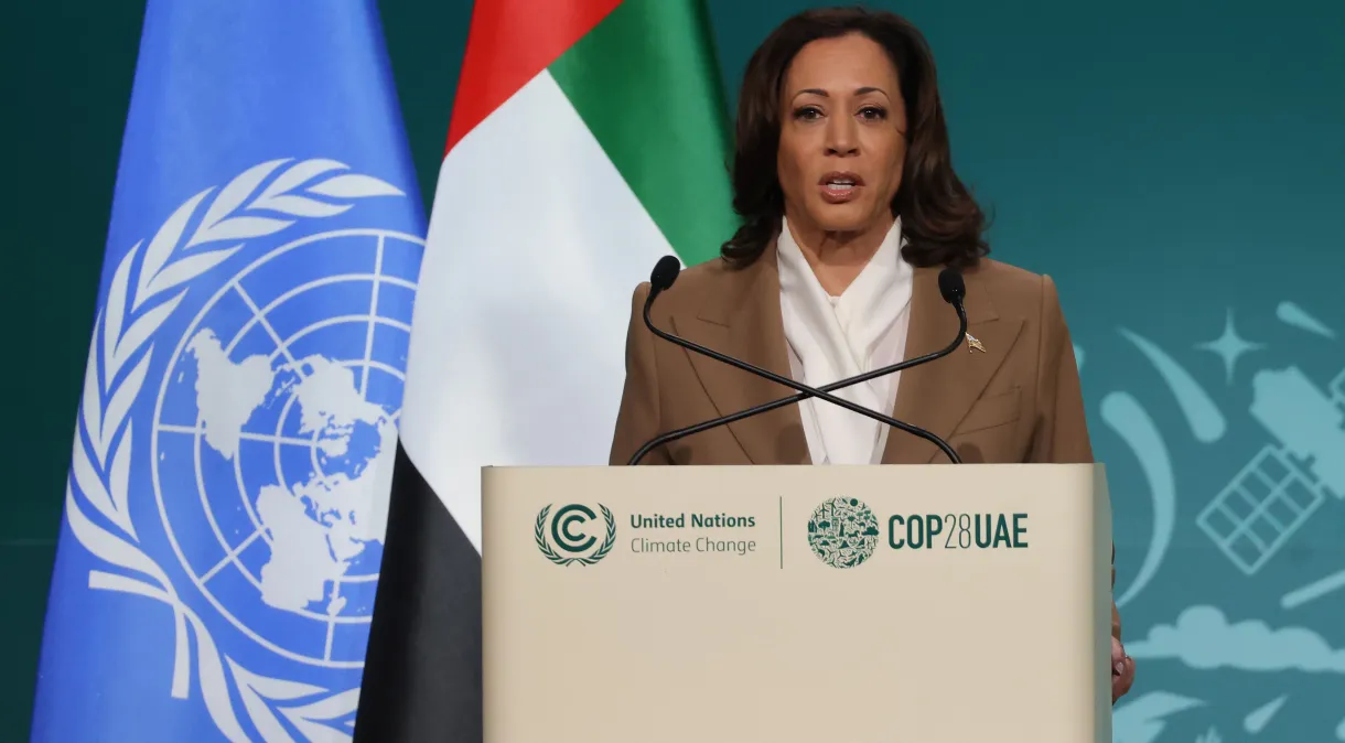 A vice-presidente americana, que está atualmente nos Emirados Árabes Unidos participando da cúpula da COP28 em Dubai, tem estado na linha de frente dos esforços diplomáticos dos EUA, conversando com os líderes do Egito, dos Emirados Árabes Unidos e da Jordânia em meio à cúpula do clima.