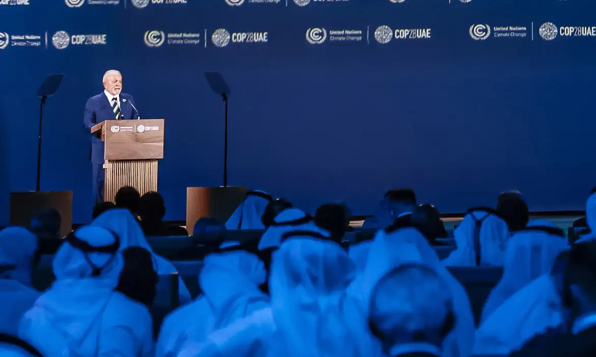 Em seu primeiro discurso na abertura da Conferência das Nações Unidas sobre Mudanças Climáticas (COP28), em Dubai, o presidente Luiz Inácio Lula da Silva disse nesta sexta-feira (1º) que o planeta está farto de acordos climáticos não cumpridos, de metas de redução de emissão de carbono negligenciadas, de discursos eloquentes e vazios e do auxílio financeiro aos países pobres que não chega. “O planeta já não espera para cobrar da próxima geração”.Durante a solenidade, lula citou que a humanidade sofre com secas, enchentes e ondas de calor cada vez mais extremas e frequentes e lembrou a seca no Norte do Brasil e as enchentes no Sul. “A Amazônia amarga uma das mais trágicas secas de sua história. No Sul, tempestades e ciclones deixam um rastro inédito de destruição e morte”, destacou. “A ciência e a realidade nos mostram que desta vez a conta chegou antes”.