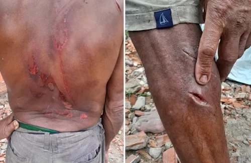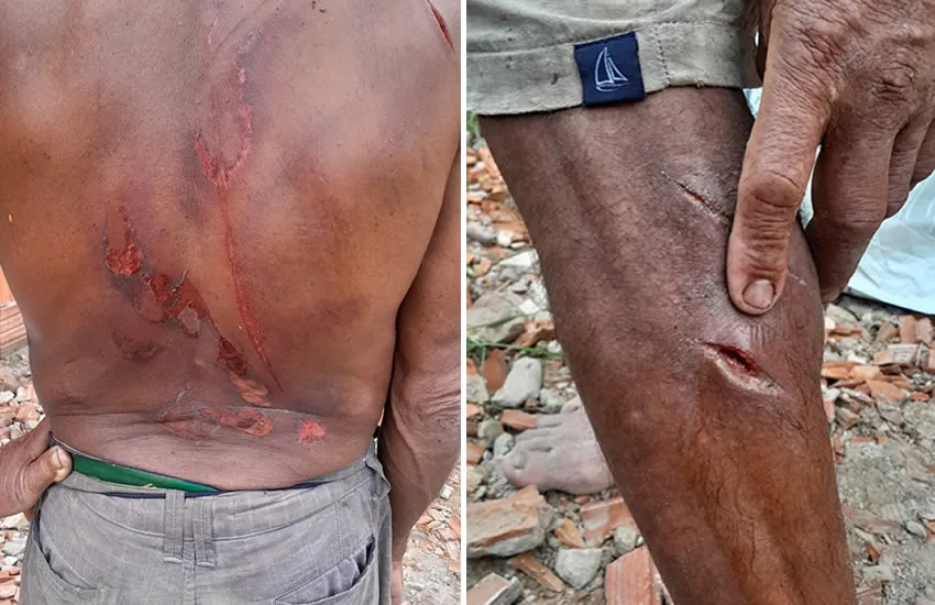 O homem disse que os 5 homens chegaram ao local onde ele estava, com bebida alcoólica e passaram a se desentender. Quando ele já ia embora, os 5 correram em sua direção e começaram a espancá-lo. Lhe bateram com as mãos, com um terçado e usaram uma motosserra para lhe cortar. “Eles ligaram a motosserra e disseram que iriam rolar o meu pescoço. Eu pedia que eles para que eles parassem, mas eles não paravam. Me bateram e torturaram por 30 minutos e foram embora levando meu dinheiro”, relata a vítima, que contou conhecer todos os autores há muito tempo.