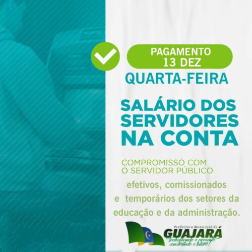 A prefeitura do município de Guajará (AM), desde esta segunda-feira, 11, está liberando o pagamento do 13º salário, somado ao referente ao mês de dezembro, antecipado para esta quarta-feira, 13, para os funcionários efetivos, comissionados e temporários dos setores da educação e da administração do município.