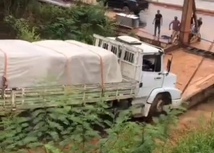Um vídeo divulgado na última sexta-feira, 12, mostra a dificuldade do motorista de um caminhão de carga, que tentava embarcar em uma balsa no Porto de Cruzeiro do Sul, em tentar controlar o veículo que, sob a chuva, escorrega na rampa enlameada.