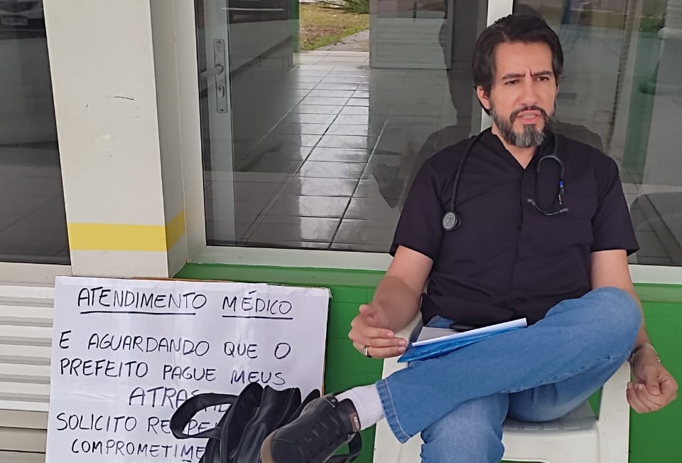 O cartaz comunicava a população que o atendimento médico seria realizado ali mesmo em frente à prefeitura, enquanto ele aguardava o pagamento. “Solicito respeito e comprometimento”, escreveu o médico.