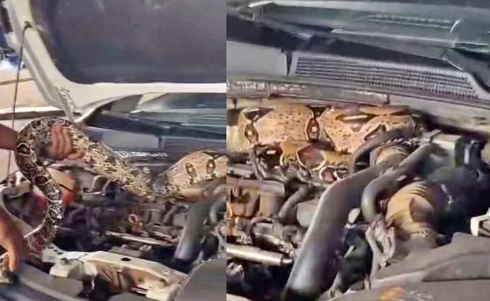 Segundo informações, o veículo havia chegado através de um guincho, trazido por uma cliente. Ao estacionar o veículo no pátio e abrir o capô, os mecânicos se surpreenderam com o animal escondido, que media mais de 2 metros.
