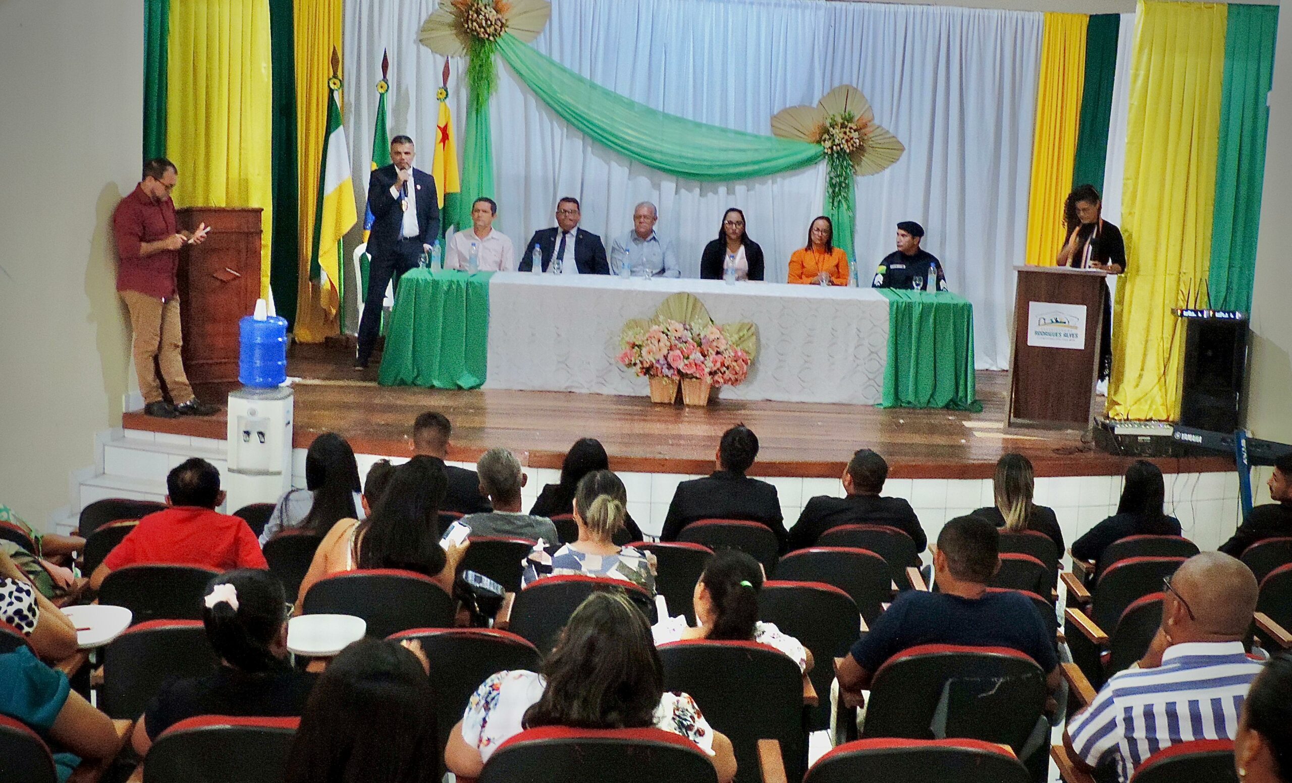 O Presidente da Câmara de Vereadores de Rodrigues Alves, Tiago Matos, participou nesta quarta-feira (10), da cerimónia de posse dos novos conselheiros tutelares, composto por 05 membros titulares e outros 05 suplentes.