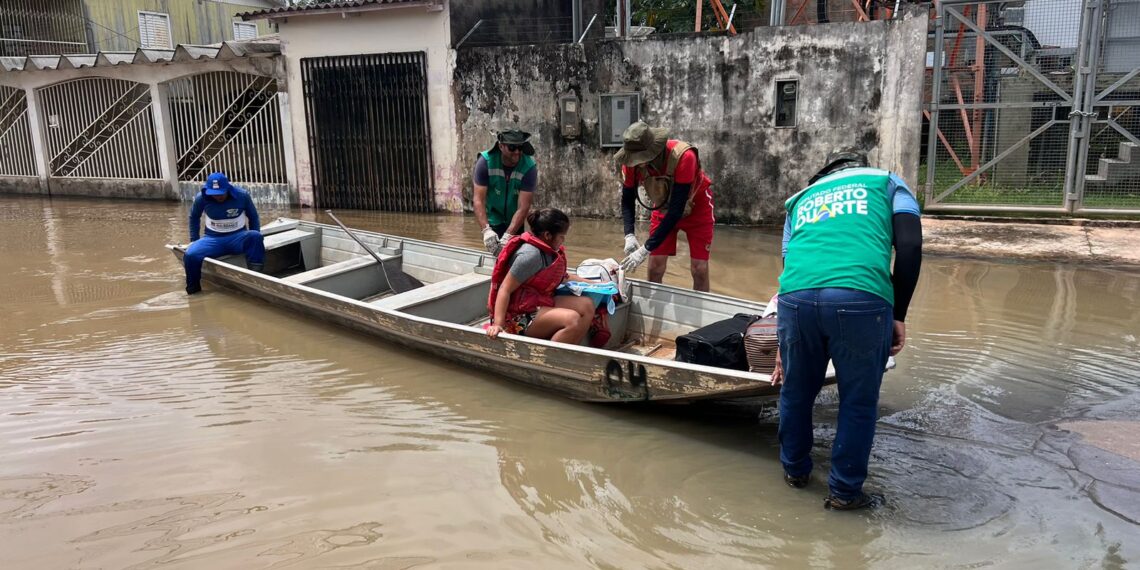 O resgate foi feito por assessores do deputado federal Roberto Duarte (Republicanos), que estão diariamente nos bairros, prestando assistência às vítimas da enchente. Cerca de 450 famílias já foram obrigadas a deixar suas casas em Rio Branco.