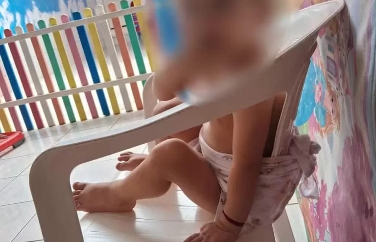 O g1 obteve, com exclusividade, imagens gravadas por funcionárias da creche que revelam uma criança amarrada em uma cadeira de plástico com uma fralda e chorando bastante. Outras imagens mostram crianças dormindo no chão dos cômodos ou em cima de pedaços de pano espalhados pela sala.