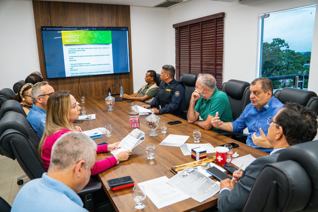 Na manhã desta sexta-feira (23) foi realizado um encontro na Assembleia Legislativa do Acre (Aleac) para apresentar as agendas que deverão ser cumpridas sobre o Fortalecimento do Corredor Interoceânico. O presidente Luiz Gonzaga, juntamente com os secretários Luís Tchê e Assurbanipal, liderou a análise dos esforços voltados para a conexão entre Peru, Bolívia e os estados brasileiros do Acre, Rondônia, Amazonas e Mato Grosso.