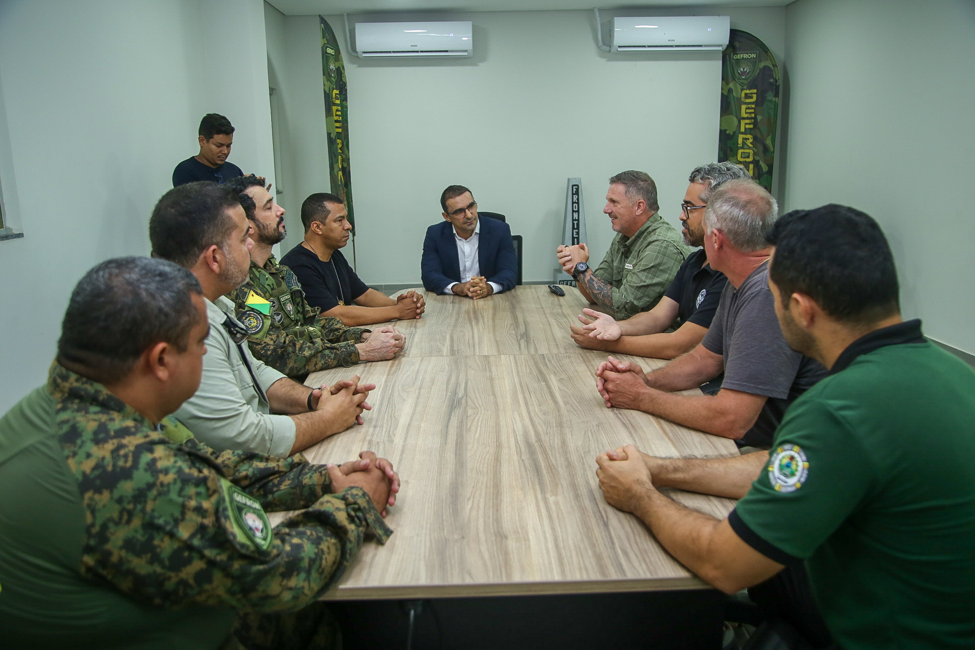 Visando o fortalecimento de políticas de combate aos crimes fronteiriços, a Secretaria de Estado de Justiça e Segurança Pública do Acre (Sejusp) recebeu nessa quinta-feira, 1º, membros da Embaixada dos Estados Unidos da América (EUA) e a Polícia Federal para uma visita institucional à Base de Fiscalização Avançada do Grupo Especial de Fronteira (Gefron), no município de Senador Guiomard.