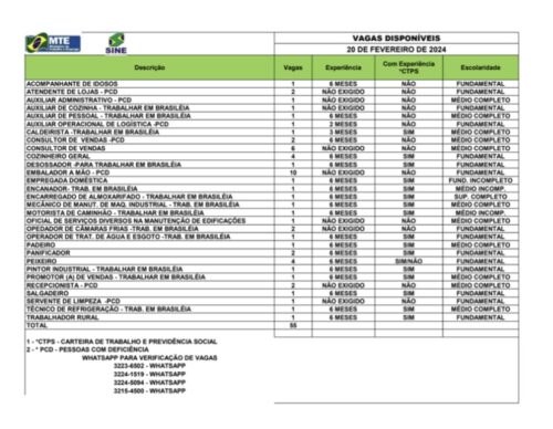 O Sistema Nacional de Emprego do Acre (Sine) divulga 55 vagas de emprego para diversas áreas nesta terça-feira (20) em Rio Branco.