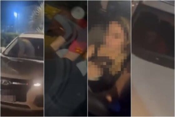 No vídeo é possível observar o momento em que o namorado grita que vai expor a relação na igreja e que ele iria quebrar o carro da mulher que não queria abrir a porta do veículo.
