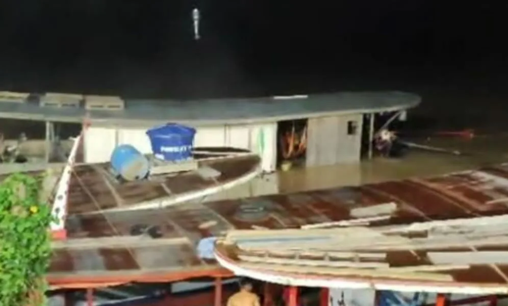 Um vídeo que circula nas redes sociais mostra o batelão logo após o naufrágio e o desespero das pessoas que presenciaram o acidente.