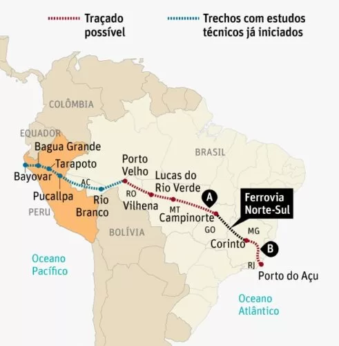 O assunto vem sendo discutido de forma ousada e visionária pelo Brasil, o Peru e a China, países que vem anunciando para breve parceria estratégica para o desenvolvimento da Ferrovia Transoceânica que ligará os oceanos Atlântico ao Pacífico, na costa peruana. Do Peru à China, via Oceano Pacífico, o transporte de cargas diminuirá, em relação às viagens através do Oceano Atlântico, na costa brasileira, pelo menos 15 mil milhas náuticas entre a América do Sul e o continente asiático, o que facilitaria as relações comerciais em relação ao tempo e redução nos valores de fretes.