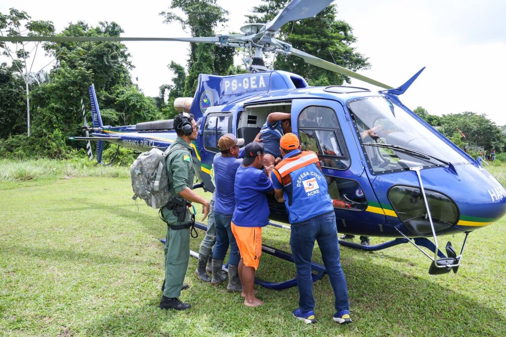 O governo do Acre, por meio do Centro Integrado de Operações Aéreas (Ciopaer), realizou dois resgates nesta terça-feira, 5, na Aldeia Indígena Jatobá, localizada em Assis Brasil, via transporte aéreo. O município está entre os 19 afetados pelas enchentes.