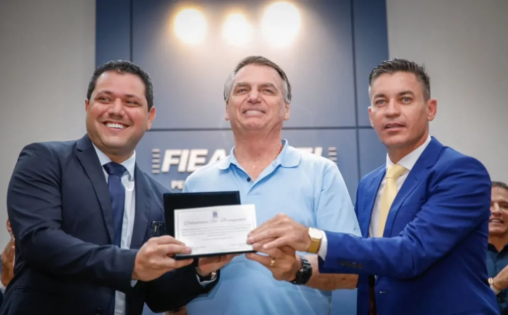O ex-presidente da República, Jair Bolsonaro, recebeu no auditório da Federação das Indústrias do Acre – FIEAC, na manhã desta sexta-feira, 22, o título de cidadão rio-branquense. O título teve aprovação unânime da Câmara Municipal de Rio Branco.