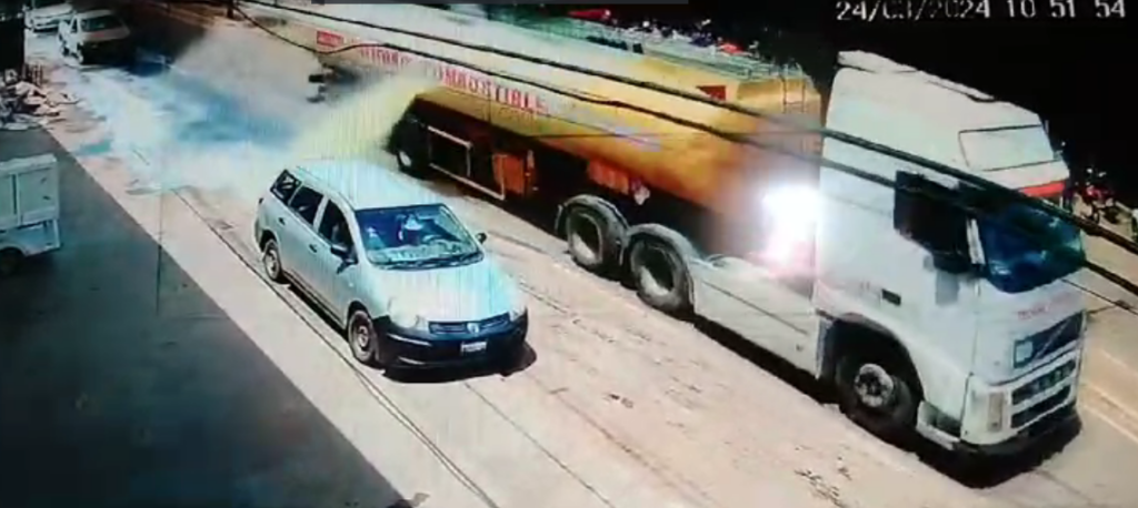 O veículo tinha placas da Bolívia, país vizinho à cidade acreana, e trafegava pela Avenida Santos Dumont, próximo à delegacia da cidade. Por conta do furo, o caminhão estava jorrando combustível em cima dos carros que estavam estacionados pela rua.