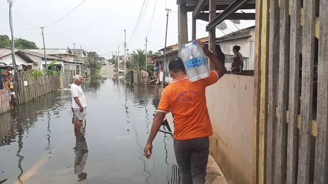 Os moradores do bairro da Várzea, em Cruzeiro do Sul, no Acre, estão recebendo água potável da Defesa Civil Municipal, após o rompimento de uma adutora do Saneacre, que deixou a região sem abastecimento. O incidente ocorreu na segunda-feira (4), em meio à cheia do rio Juruá, que já afetou 20 mil pessoas na cidade.