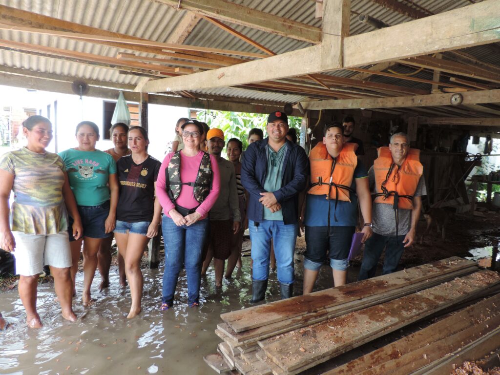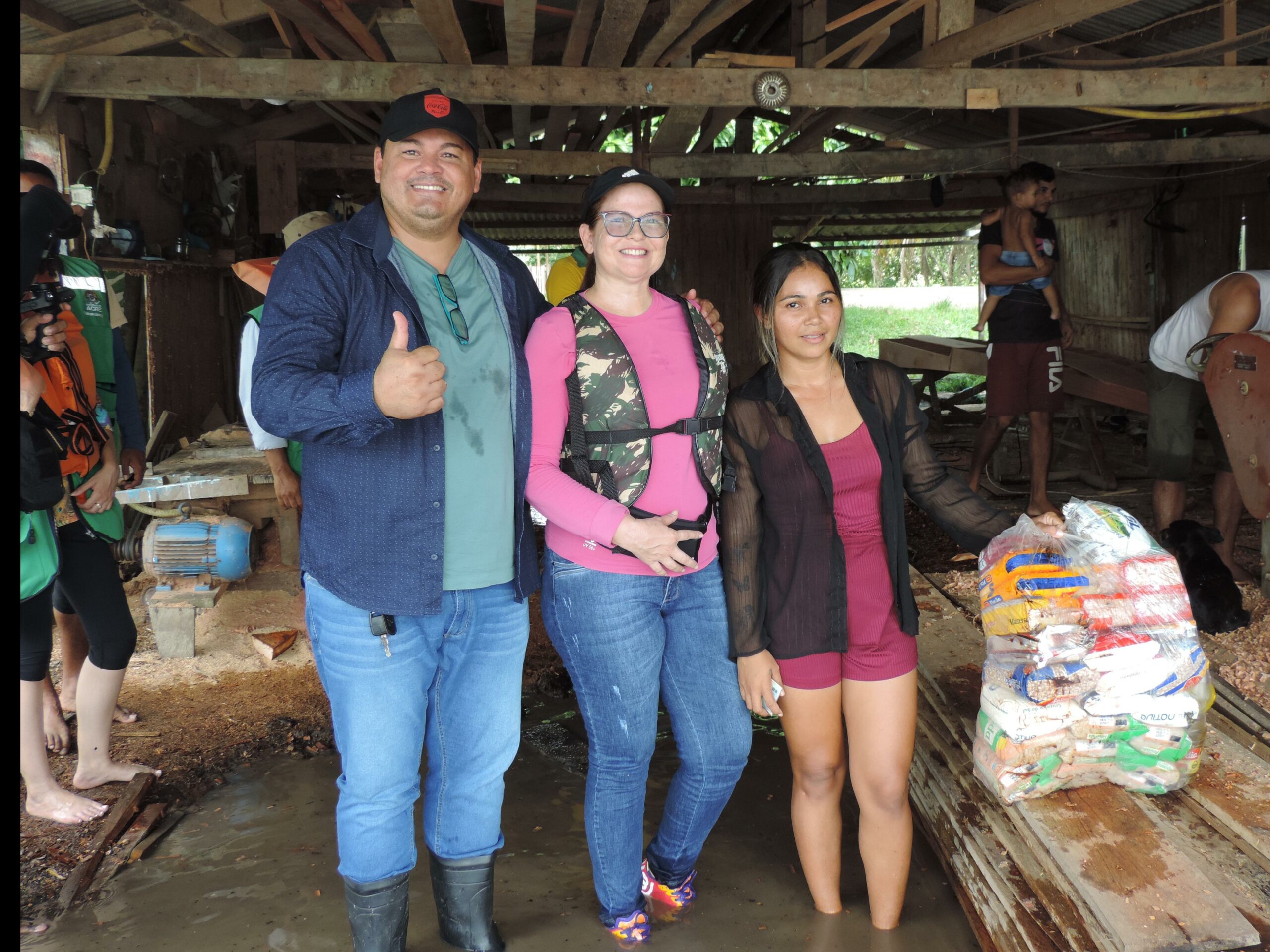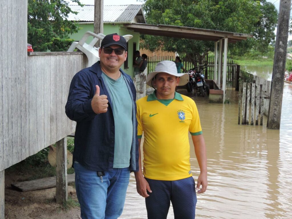 Nesta quarta-feira (05), o Presidente da Câmara de Rodrigues Alves, Tiago Matos, acompanhado de sua equipe de assessoria, esteve na comunidade Bela Vista (Do Seu Tadeu) entregando cestas básicas a famílias atingidas pela cheia do Rio Juruá.
