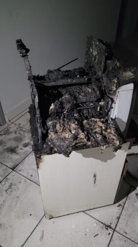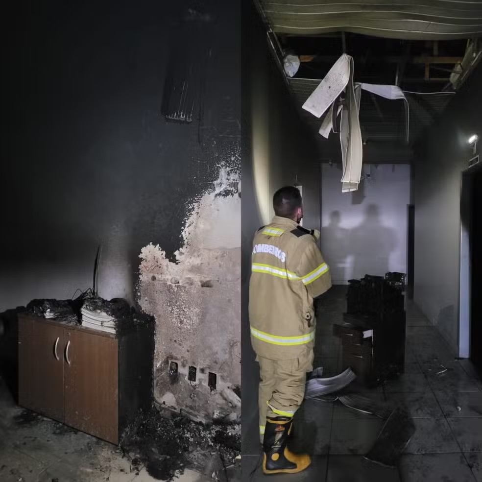 De acordo com o Boletim de Ocorrência registrado, o forro da sala administrativa é de madeira e estava muito quente. Os bombeiros realizaram o resfriamento com água em todo o ambiente e, em seguida, utilizaram técnicas de ventilação para dissipar a fumaça.