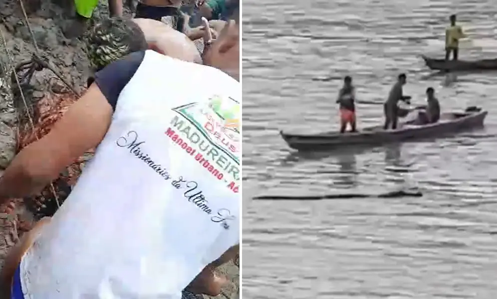Outro vídeo, captado por populares da região, mostra o animal já morto sendo retirado da beira do rio e colocado no barranco. Felizmente, nenhuma pessoa ficou ferida no incidente.