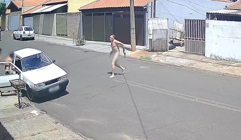 São Paulo – Imagens de câmeras de segurança registaram o momento que um idoso sai de casa pelado e assassina a facadas o próprio enteado. A vítima foi identificada como Thiago Alves, 34. O autor do crime é José Cláudio Gomes, 61. O homem que foi assassinado a facadas, na tarde de terça-feira (5), em Assis (SP), era enteado do suspeito de cometer o crime.