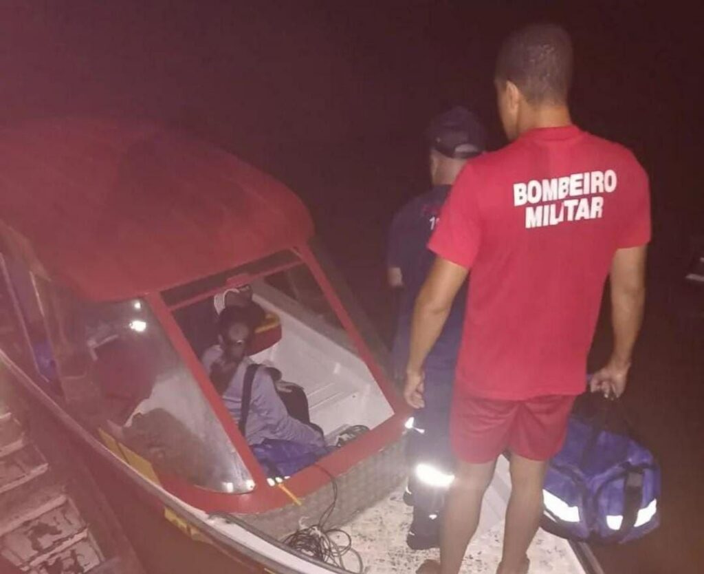 Os profissionais utilizaram uma embarcação fluvial para chegara rapidamente ao local de difícil acesso.