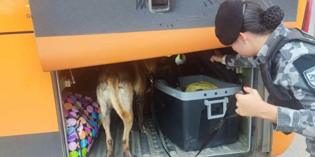 A droga foi encontrada pelo K9 Piscapega, cão especialista em detecção de armas de fogo e entorpecentes. O coletivo fazia o trajeto Cruzeiro do Sul/Rio Branco.