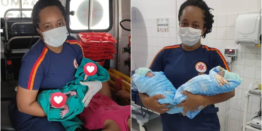 “A gente estava voltando e os nenéns não esperaram pra chegar na maternidade. Na metade da viagem de volta ela, que já tinha entrado em trabalho de parto, não conseguiu esperar até lá, e aí eu tive que fazer o parto dentro da ambulância. Graças a Deus deu tudo certo, os bebês estão saudáveis e bem. Tanto eles como ela”, relatou Tayanny.