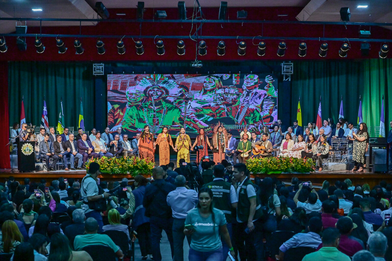 “Além das pautas comuns de grande relevância para os debates deste evento, estaremos assinando importantes termos que demonstram o compromisso e as parcerias consolidadas entre o governo do Acre e o governo federal, por meio do Ministério do Meio Ambiente e Mudanças Climáticas, do Ministério do Desenvolvimento e Assistência Social, Família e Combate à Fome e do Ministério do Desenvolvimento Agrário e Agricultura Familiar com o BNDES [Banco Nacional de Desenvolvimento Econômico e Social] e Unibanco. Temos a marca de um povo colaborativo. Garanto nosso máximo empenho em estabelecer, durante este evento, uma conexão verdadeira baseada em empatia, colaboração e sinergia, para que todos se sintam acolhidos, respeitados e inseridos como parte fundamental de tudo o que discutiremos e faremos nestes dois dias”, destacou o governador.