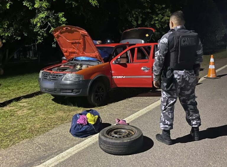Os policiais abordaram um veículo VW/Gol, e os cães do Grupamento de Operações com Cães da CPE/6°BPM detectaram indícios de ilícito no carro. Então, foram realizadas a busca veicular e a pesquisa criminal dos passageiros.