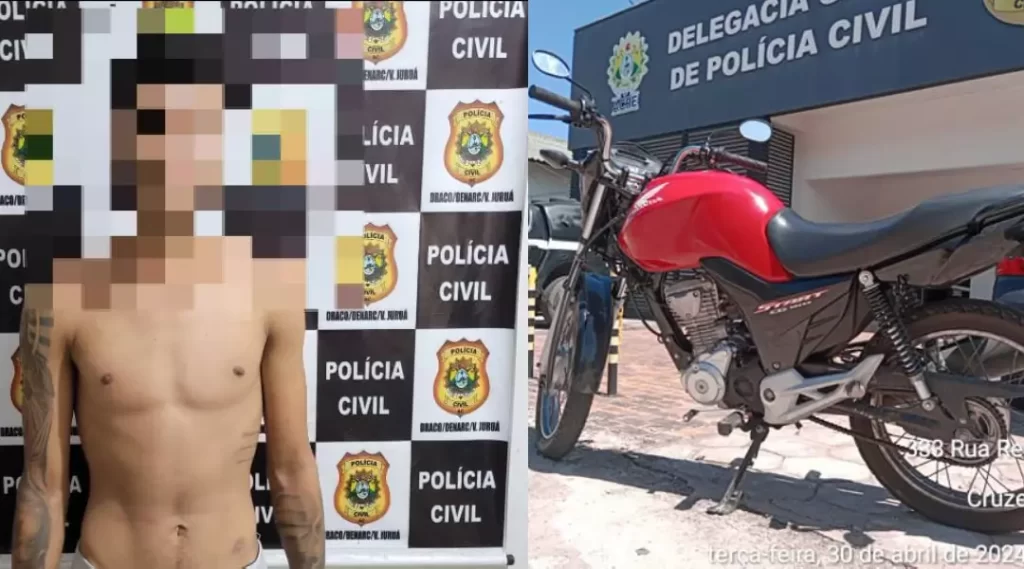 Após tomarem conhecimento do ocorrido, os agentes do Nepatri iniciaram investigações que levaram à identificação do autor do delito. Na manhã de ontem, dia 30 de abril, o criminoso foi encontrado em sua residência ainda em posse da motocicleta, que estava guardada em seu quarto. O veículo foi utilizado em outro roubo no município de Mâncio Lima, onde, junto com seu comparsa, o acusado rendeu quatro pessoas no CRAS local, roubando celulares, dinheiro e cordões de ouro.