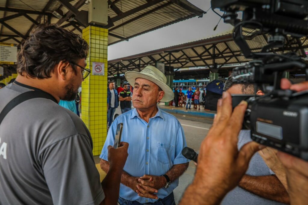 O prefeito de Rio Branco, Tião Bocalom, visitou o Terminal Central na manhã desta terça-feira (21) e acompanhou o desembarque de passageiros do sistema de transporte público que utilizam o ônibus elétrico da Marcopolo, que circula na capital acreana desde 6 de maio para um período de 60 dias de teste de viabilidade.