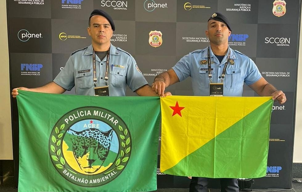 Os sargentos Bardavil Farias e Clemerson Souza representaram a corporação acreana no encontro, que tem como objetivo disseminar aos usuários da rede as tecnologias disponíveis no combate às atividades ilegais na Amazônia.