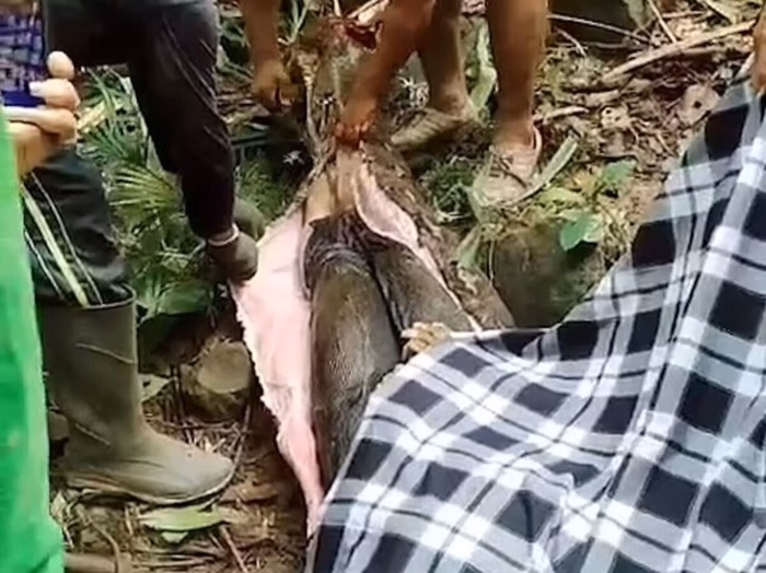 Preocupado com o desaparecimento da esposa, Noni, marido de Farida, reuniu alguns moradores locais para procurá-la. Após algumas horas, uma cobra Píton gigante, com volume na barriga, foi encontrada. “Abrimos a barriga e apareceu a cabeça de Farida”, disse o chefe da aldeia Suardi Rosi à AFP”. Veja o momento: