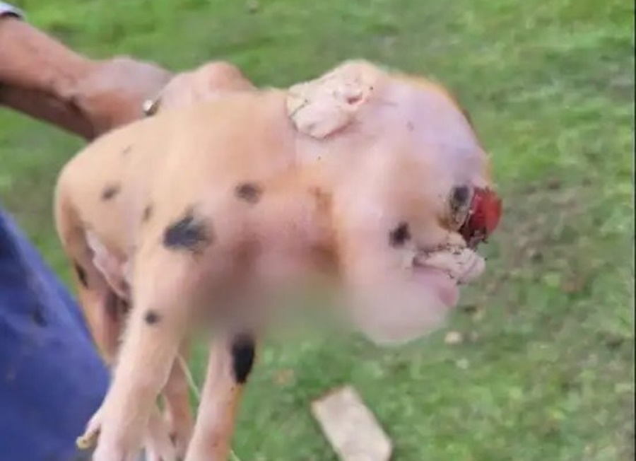 “É uma situação muito incomum. Nunca vi nada parecido”, relatou um morador que testemunhou o nascimento do porco.