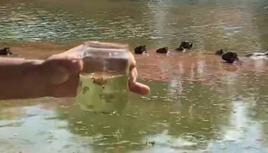 A fala acompanha um vídeo que mostra a situação de um dos lagos da instituição.