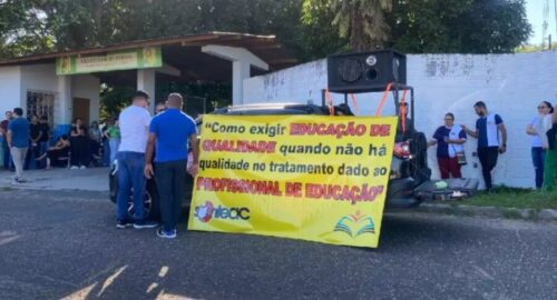 Nesta terça-feira, 18, em Cruzeiro do Sul, os professores da rede estadual de ensino realizaram o Dia D de paralisação convocado pelo Sindicato dos Trabalhadores em Educação (Sinteac), reunindo-se em frente ao Núcleo de Educação, no bairro Aeroporto Velho. Por isso, cerca de 90% das escolas da rede estadual não tiveram aulas.