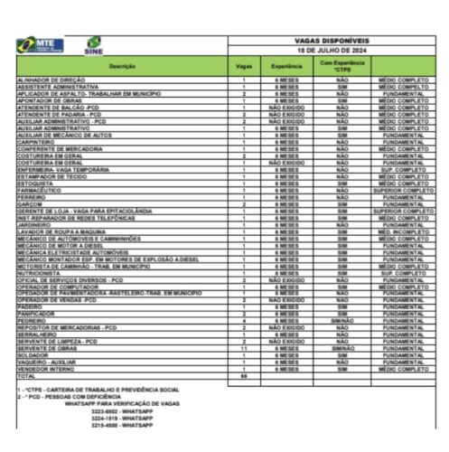 O atendimento ocorre por telefone, onde o Sine fornece mais informações sobre as oportunidades divulgadas. Para conferir se as vagas ainda estão disponíveis, basta entrar em contato através dos telefones 0800 647 8182ou (68) 3224-5094.