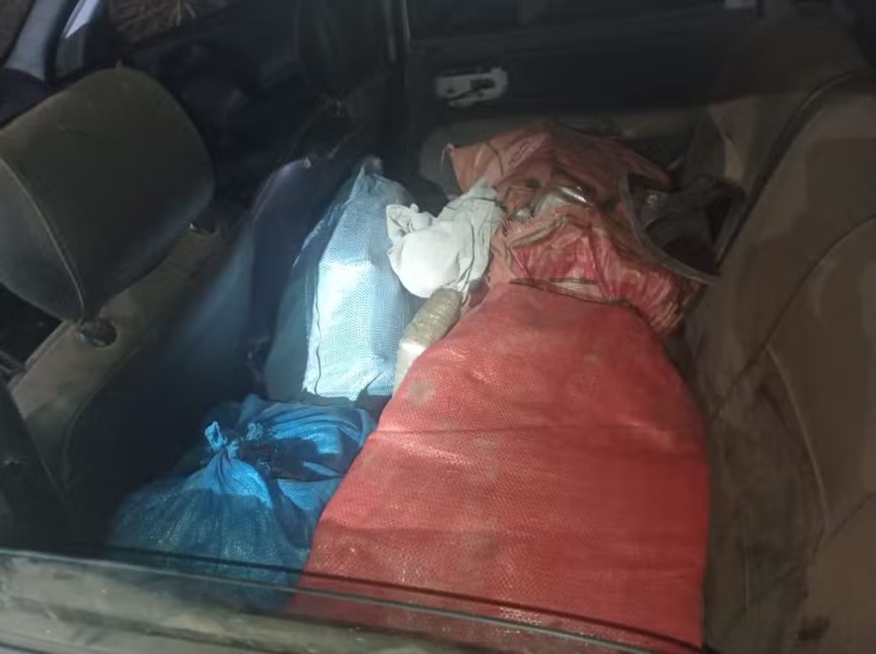 Os suspeitos abandonaram o carro em movimento, segundo a polícia, e fugiram para o matagal. Ao se aproximaram o veículo, os policiais encontram vários sacos de fibra com os ‘tijolos’ de maconha.