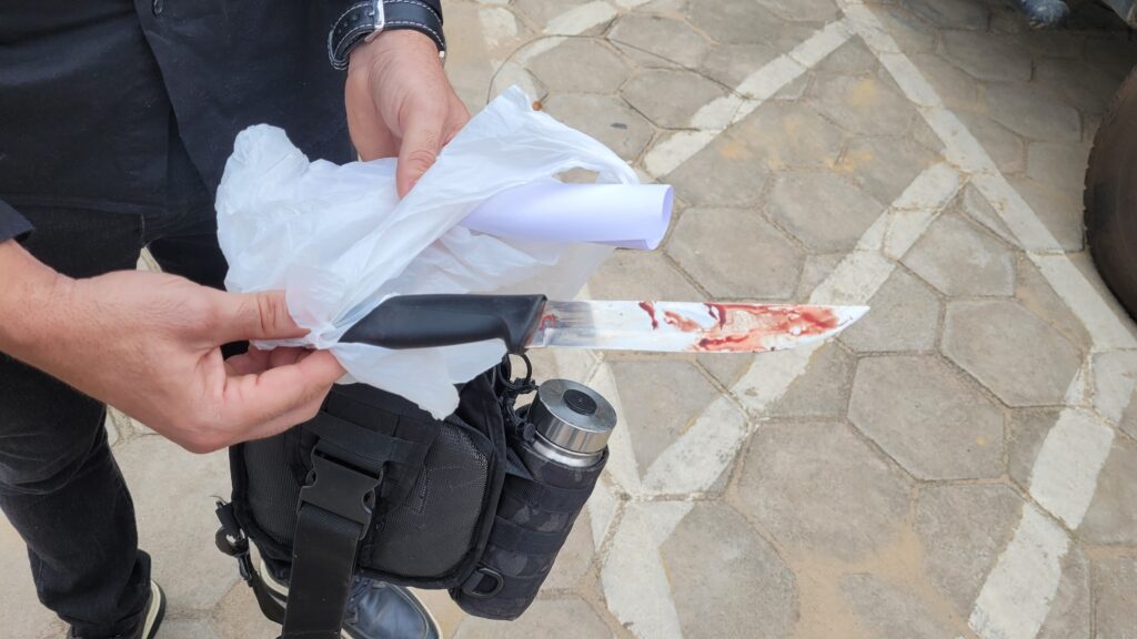 O delegado Marcílio Laurentinho relatou os acontecimentos: “A Polícia Civil registrou uma ocorrência de tentativa de homicídio onde a Polícia Militar estava no patrulhamento da cidade e, durante as festividades, se deparou na rua Chapuri com duas crianças no meio da rua pedindo apoio. Ao se dirigirem até as crianças, foram informados que o pai delas estava em luta corporal com outro indivíduo. Os policiais foram até o local, perceberam a luta, todos dois estavam ensanguentados e ordenaram que largasse a arma, a faca, no caso, e deu voz de prisão ao autor.”