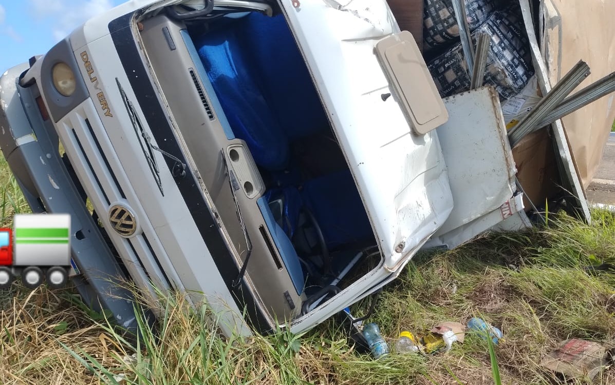 Nesta terça-feira, 9, um caminhão que trafegava na BR-364 sentido Rio Branco – Cruzeiro do Sul trazendo mercadorias para o Grupo Yma tombou após o motorista cochilar ao volante.