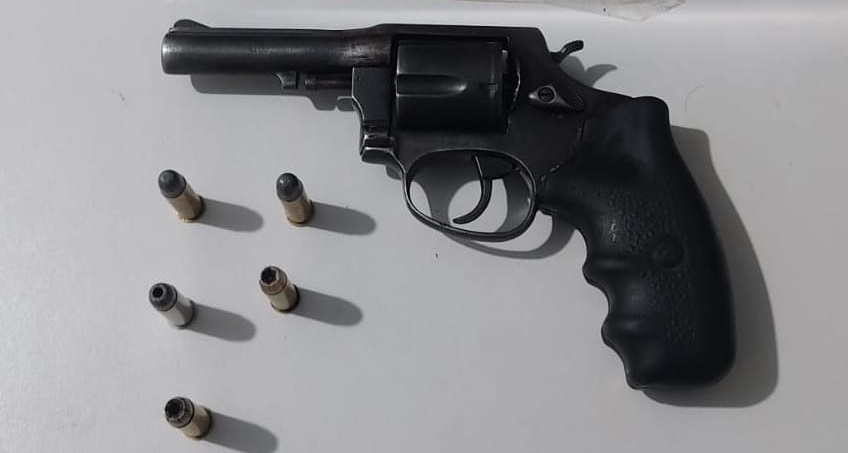 A arma, um revólver calibre .38 com cinco munições intactas, foi apresentada na delegacia para as providências cabíveis.